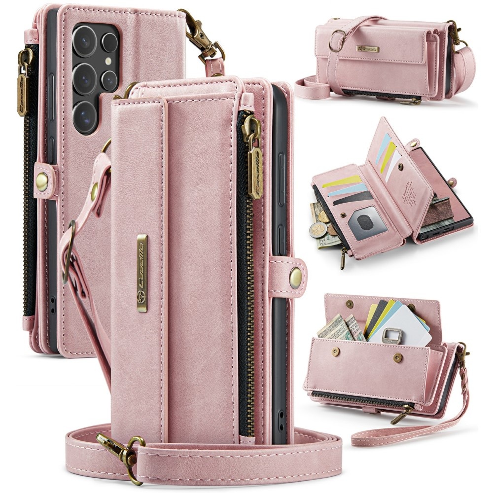 De CaseMe hoes portemonnee tasje Lichtroze voor de Samsung Galaxy S25 Ultra biedt RFID-bescherming, 9 pasjeshouders en een ritsvak. Stijlvol, multifunctioneel en stevig.