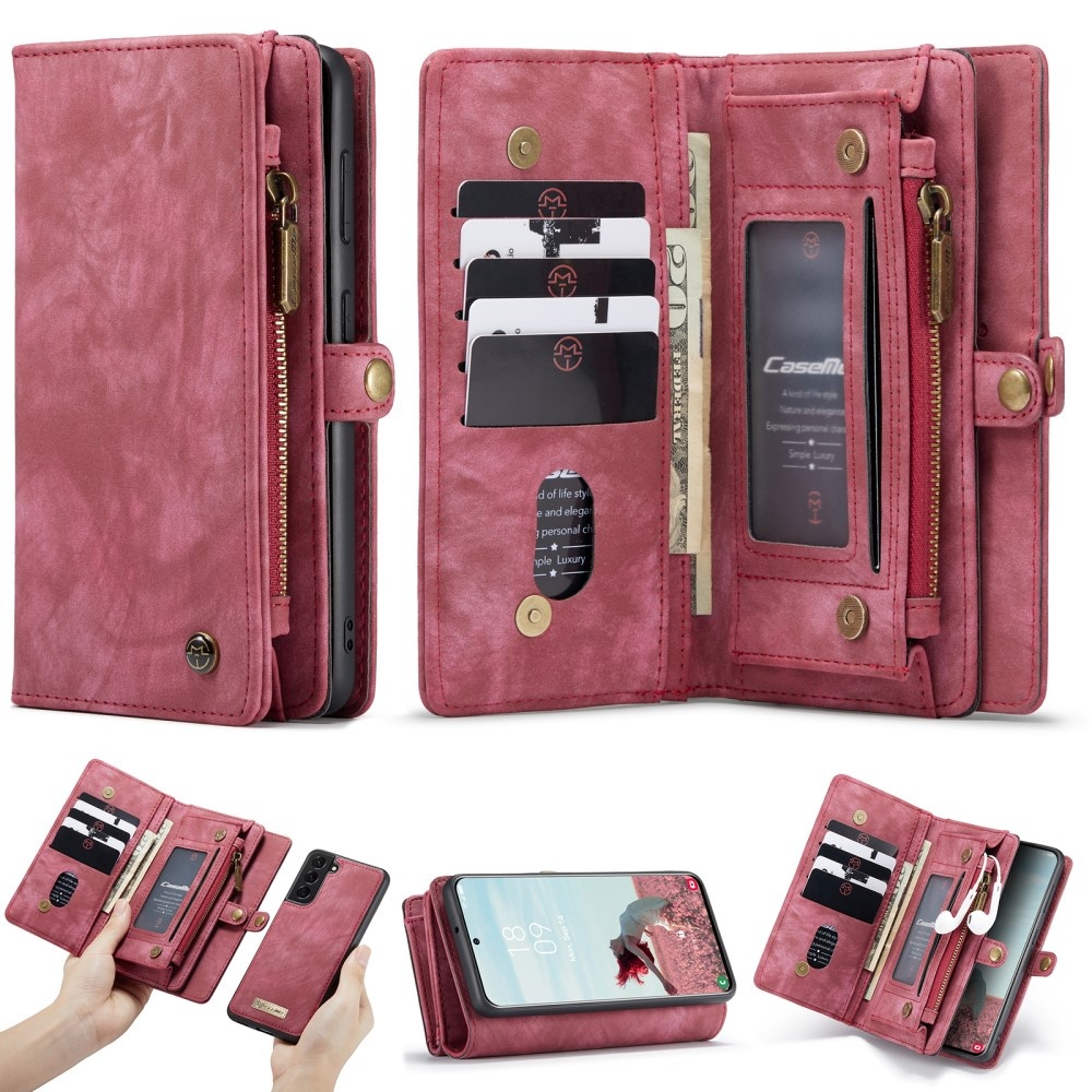 Deze vintage en ideale 2 in 1 portemonnee hoes Rood van het merk Caseme, is speciaal gemaakt voor de Samsung Galaxy S21 Fan Edition. Wanneer u kiest voor een Caseme hoes, kiest u voor een goed afgewerkte hoes met oog voor detail en een vintage look.