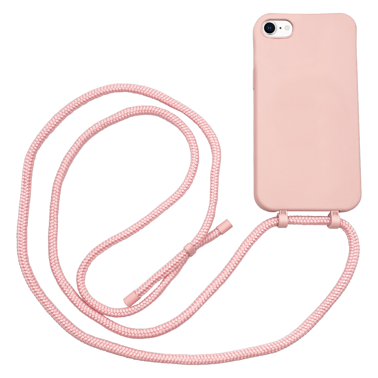 Deze Høyde telefoonhoes met koord in de kleur Roze is speciaal gemaakt voor de iPhone SE 2022, iPhone SE 2020, iPhone 8, iPhone 7 en de iPhone 6(s). Het is een ideaal hoesjes wanneer je niet beschikt over broekzakken en is verkrijgbaar in meerdere kleuren