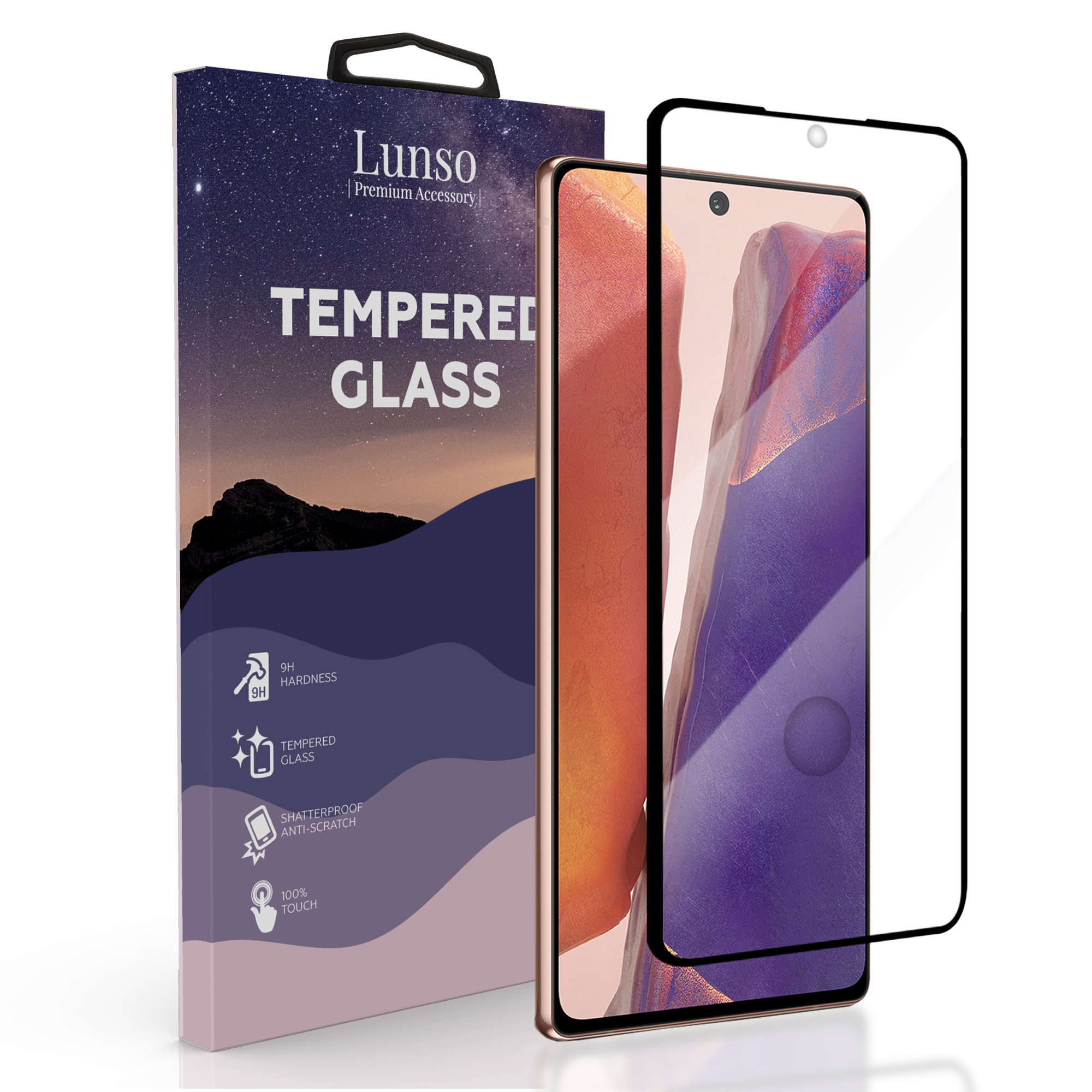 Gehard 9H glas met zwarte rand om uw Samsung optimaal te beschermen. De Lunso screenprotector is speciaal uitgesneden voor de Samsung Galaxy Note 20 en bedekt het hele scherm. Deze Apple tempered glass geeft goede bescherming tegen krassen op het scherm.