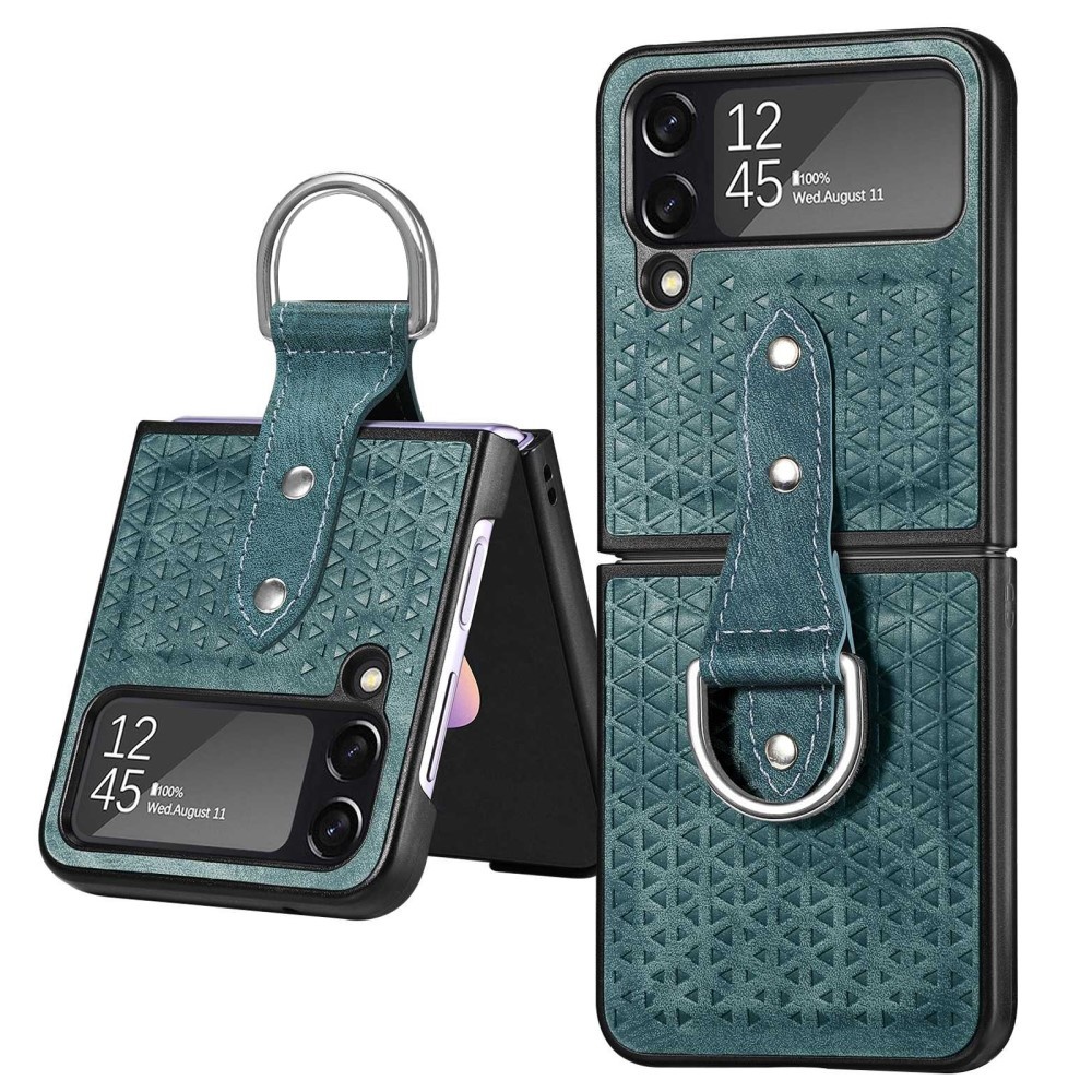 Samsung Galaxy Z Flip4 backcover hoesje Groen met ringhouder, bestaat uit één deel en biedt bescherming tegen val- en stootschade. Het Samsung Galaxy Z Flip4 backcover hoesje met ringhouder heeft een stijlvolle en Groen kleur met een soft-touch coating.
